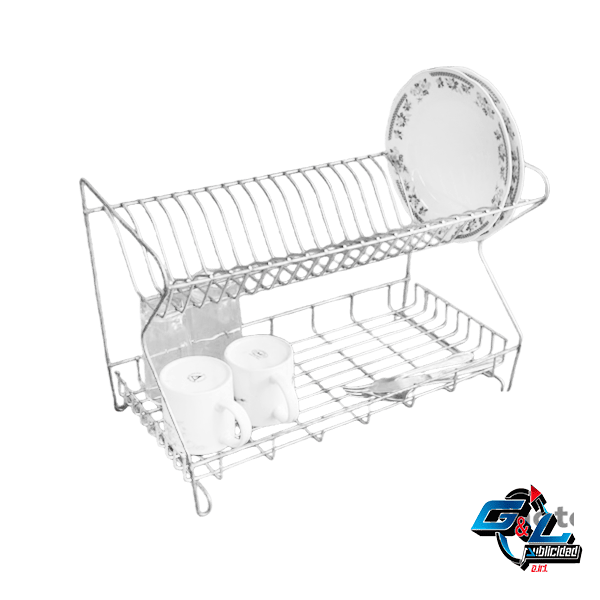 Útil escurridor y organizadores de platos doble piso para 20 platos.